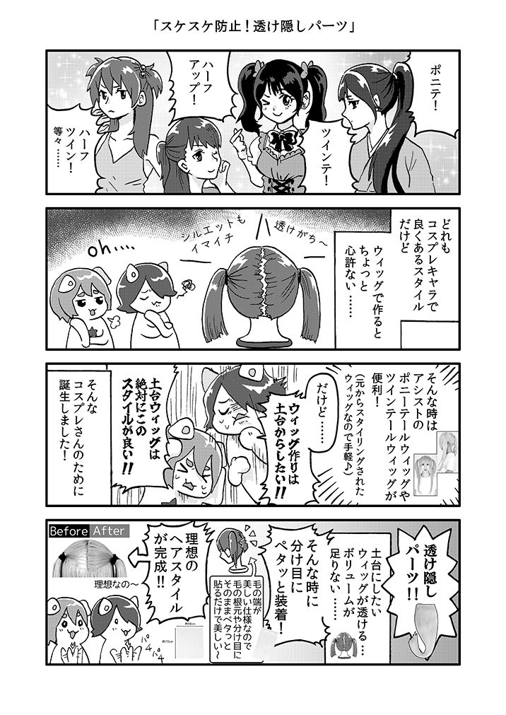 ★アシにゃん四コマ劇場★第309話 スケスケ防止!透け隠しパーツ 2025年12月16日アシにゃん漫画アシストSTAFF 『透け隠しパーツ』さえあれば ポニテやツインテの結い上げスタイルが こんなにきれいに仕上がる! 🔻『透け隠しパーツ』はコチラ!