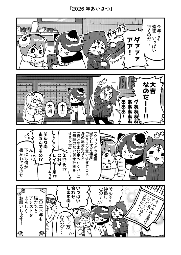 ★アシにゃん四コマ劇場★第311話 2026年あいさつ 2026年1月20日Webスタッフブログ, アシにゃん漫画アシストSTAFF \よろしくお願いします!なの!/ 🐱😺🐯 🔻イベント準備はコチラから!